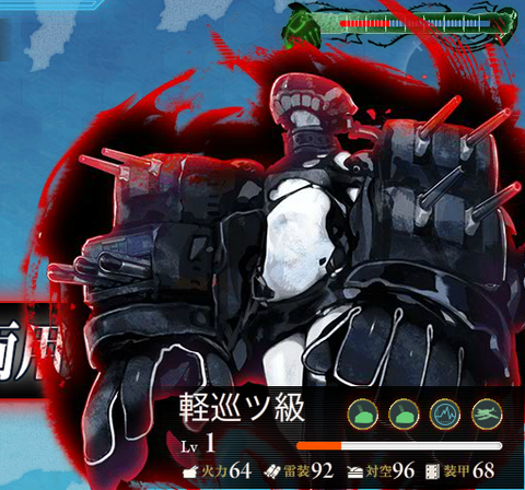 ツ級はあくまで軽巡だから、カテゴリーを無視して三式弾(のようなもの)を持つことはないんじゃないだろうか。 まあ、 アイコン が同じであるだけの別 枠 の装備ならわからんけどさ。0 5inch連装両用莢砲 0 5inch連装両用莢砲 3 深海ソナー MkII 3 深海棲艦偵察機 進化チャート 軽巡ツ級とは、ブラウザゲーム『艦隊これくしょん』に登場する敵「深海棲艦」の一種である。 その巨腕は海鷲達を焼き尽くす恐怖の鉄槌と化す 概要 14年9月12日のアップデートで実装された、(鬼・姫クラスを除けば)19番目の深海棲艦。